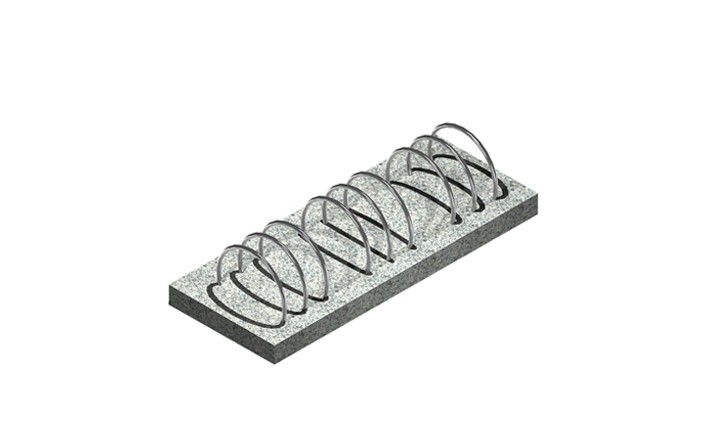 Parque bicicleta em granito com aplicação de aros em aço inox para apoio de bicicletas