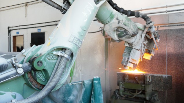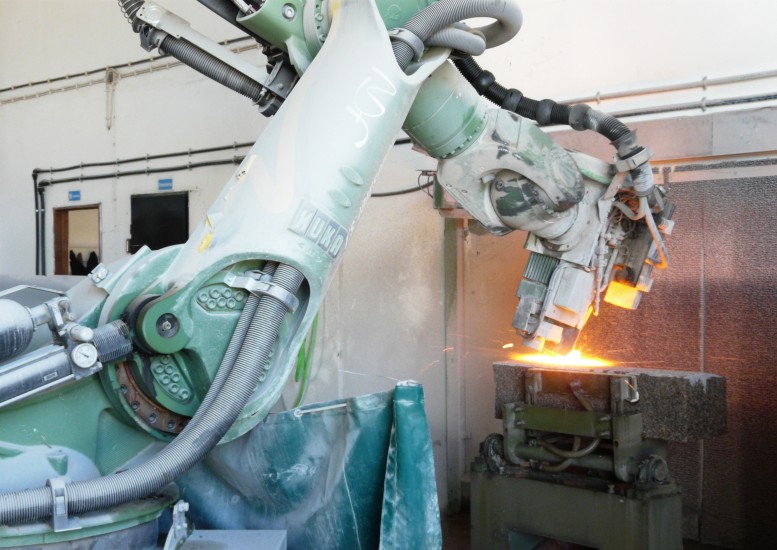 Acabado que confiere más rugosidad que el aserrado. Esta rugosidad se consigue a través de aplicar un chorro de de arena a alta presión en dirección a la cara de la piedra hasta quedar con la superficie más irregular.