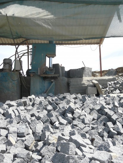 La mayor parte de las piezas que producimos son guias, bordillos y baldosas que son los productos más utilizados en obra civil. Estas piezas son ejecutadas en una línea de producción semi-automática donde la gestión de operario radica principalmente en seleccionar el mejor aprovechamiento de la tabla, además de controlar la calidad de la piedra y el producto acabado.